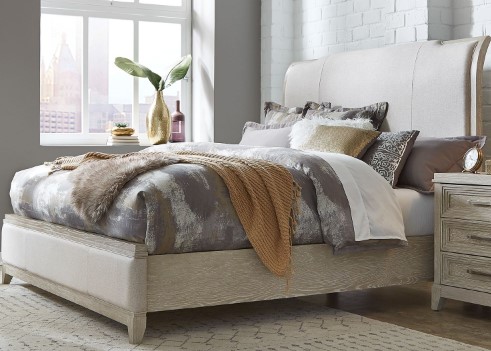 Queen Upholstered Bed - Washed Taupe & Silver Champagne